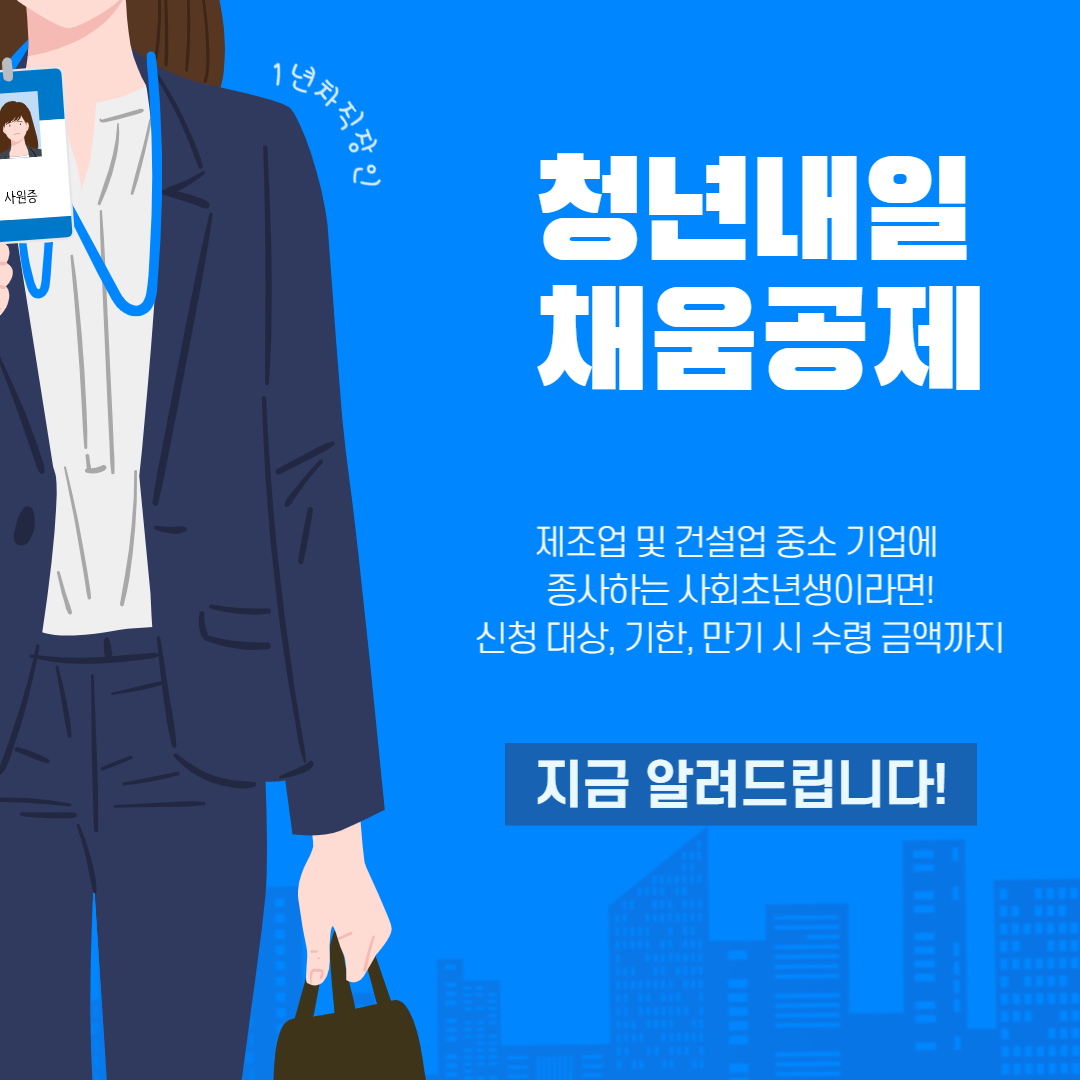 - 워크넷-청년공제 홈페이지(www.work.go.kr/youngtomorrow)에서 신청